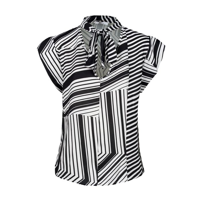 Blusa bianca e nera Alesya da donna in fantasia geometrica con dettaglio fiocco