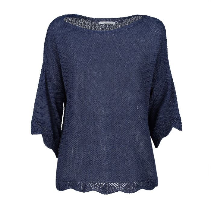Maglioncino blu leggero Alesya da donna con orlo ondulato