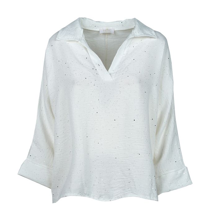 Blusa bianca Lokita da donna con glitter