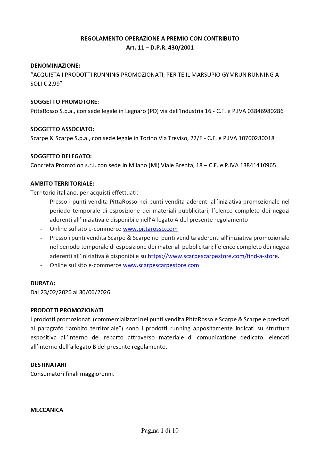 • Regolamento operazione a premio con contributo